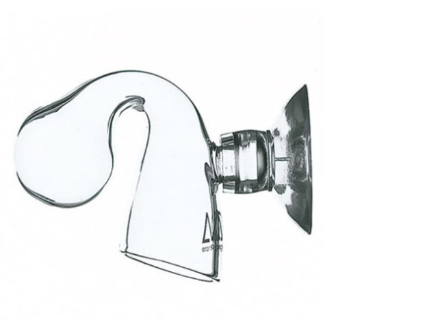 The ADA Drop Checker is an essential tool for aquarium enthusiasts aimed at maintaining an optimal CO2 level in a planted tank. The image depicts the device's elegant glass design, shaped like a curved droplet, which enhances both its function and aesthetic appeal when placed inside an aquarium. Its transparent structure allows for clear visibility of the color change indicator solution, providing a real-time CO2 level status that's both easy to read and subtly integrated within the tank environment. The smooth contours and sleek appearance not only serve a practical purpose but also contribute to the product's appeal, making it a discreet yet stylish addition to any aquatic setup.
