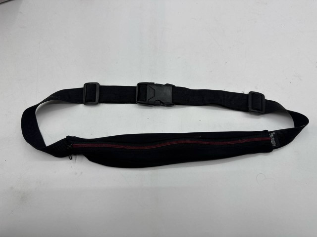 This black belt features a sleek and minimalist design, perfect for both casual and athletic wear. The adjustable strap ensures a comfortable fit, while the sturdy buckle provides added security. The accompanying zippered pocket adds functionality, allowing you to carry essentials like keys or cash while on the go. Its versatile style and practical features make it an ideal accessory for any outfit.