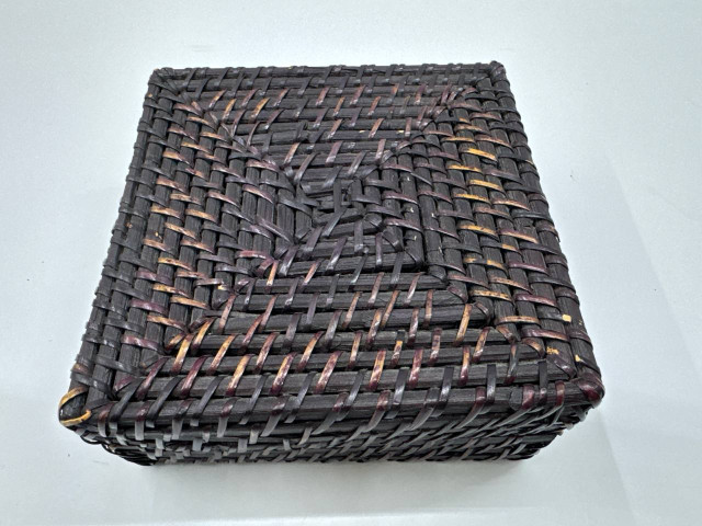 This elegant wooden jewelry box is perfect for organizing and storing a variety of jewelry items. It features a woven design, giving it a unique and textured appearance. The dark finish adds a touch of sophistication, making it a beautiful addition to any dresser or vanity. The box is spacious enough to hold earrings, necklaces, bracelets, and other accessories, allowing for easy visibility and access. Its sturdy construction ensures durability, while the open-top design allows for quick retrieval of your favorite pieces. This box is not only functional but also serves as a stylish decorative piece.
