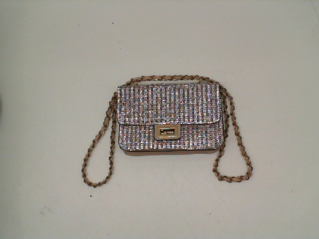 This small gold women's shoulder bag features a stunning design adorned with shimmering sequins that..