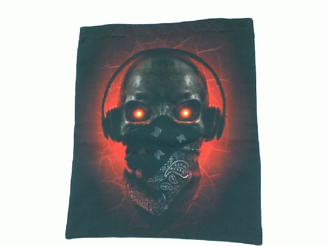 This stylish black cloth bag features a striking blue pattern that adds a pop of color to the overal..