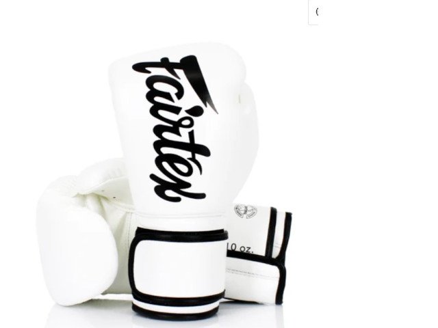 The Fairtex Microfiber Gloves for Kids are designed with high-quality microfiber material, providing durability and comfort for young athletes. The gloves showcase a classic white color, with the Fairtex brand prominently displayed in bold, black lettering across the top, adding a stylish and professional look. The wrist area features a secure Velcro strap for a snug and adjustable fit, ensuring that the gloves stay in place during training. The distinct design and materials used in these gloves make them a great choice for children engaging in boxing, kickboxing, or any martial arts training, offering both protection and style.