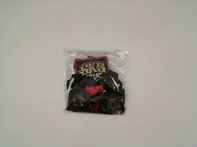 These high-quality SKS Thailand boxing shorts are designed for both comfort and style in the ring. Although the product is packaged and not fully visible, one can discern that they feature a sleek black color with vibrant red accents, likely providing a dynamic and professional look. The visible SKS logo suggests a brand association with Thai boxing standards, often indicating a product that's durable and suitable for intense training or competition. The packaging implies the product is new and well-protected, ensuring it reaches the buyer in pristine condition.