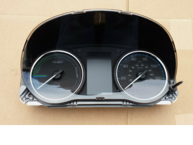 This is a used speedometer for the MITSUBISHI Outlander 3rd generation (2012-2023), model number 8100C386. The speedometer features a sleek design with two main dials for speed and power, ensuring clear visibility while driving. The black casing provides a modern aesthetic, and the glass cover protects the dials from dust and damage. This second-hand part is a cost-effective replacement, making it appealing for those looking to maintain or restore their vehicle's dashboard functionality.