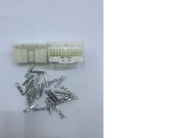 The Set of 2 Molex Connectors is designed for reliable electrical connections in various electronic applications. Each connector is crafted from high-quality plastic materials that ensure durability and resistance to wear and tear. The connectors feature a white housing, which provides a clean and professional look. Included in the set are numerous metal pins, meticulously designed for easy insertion and secure connections. These pins are made of a shiny, conductive metal that enhances electrical conductivity and ensures stable performance. This set is suitable for use in computer hardware, automotive wiring, and any DIY electronic projects requiring sturdy and dependable connectivity.