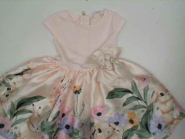 Children's pink dress with flowers and rabbit print