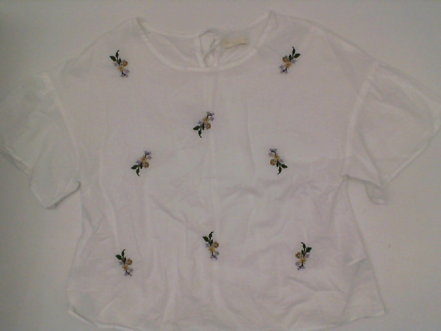 Women's white round neck shirt with rose pattern