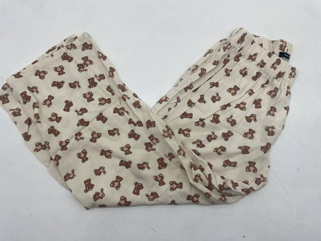 These beige sleeping pants feature a charming bear print, perfect for cozy nights at home. The playful design showcases adorable brown bears scattered across a soft, cream background, bringing a whimsical touch to your bedtime routine. Crafted from comfortable fabric, these pants ensure a relaxed fit with an elastic waistband, making them ideal for lounging or sleeping. The lightweight material allows for breathability, keeping you comfortable throughout the night while adding a playful yet stylish flair to your sleepwear collection.
