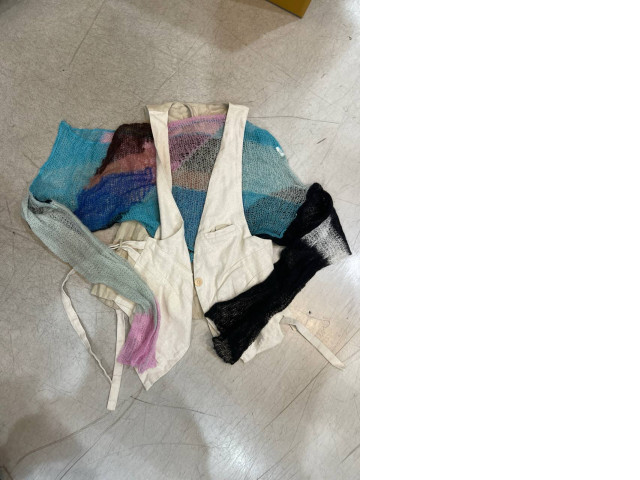 This women's set features a vibrant colored cape combined with a sleek white vest. The cape showcases a unique blend of colors, creating an artistic and bold look perfect for making a statement. Its lightweight and breathable fabric ensures comfort, while the various shades add a touch of playfulness. The white vest complements the cape, providing a clean, chic contrast that enhances the overall appeal of the outfit. Ideal for layering, this set can be styled for both casual and more polished occasions.