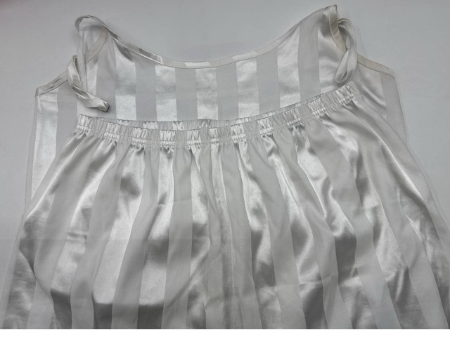 This stylish women's tank top and shorts set features a crisp white color embellished with elegant silver stripes. Made from lightweight, breathable fabric, the outfit is perfect for warm weather, ensuring comfort and ease of movement. The tank top has a relaxed fit with adjustable ties on the shoulder for a customizable silhouette, while the shorts come with an elastic waistband for a secure yet comfortable fit. The shimmering silver stripes add a touch of sophistication, making it suitable for casual outings or lounging at home. This set combines functionality with fashionable design, making it a versatile addition to any wardrobe.