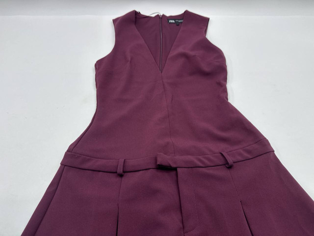 Women's Sleeveless Pleated V Neck Back Zip Mini Dress