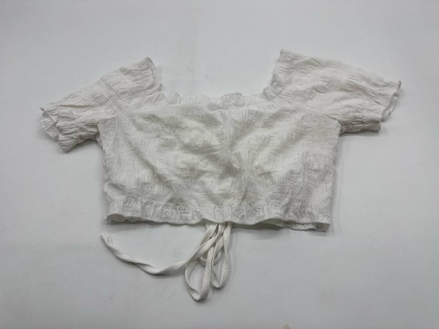 • Women's white crop top with wide neckline