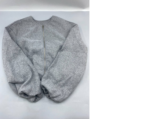 This soft grey bomber jacket from Zara features a stylish design with a clean, minimalist aesthetic. The jacket is made from a cozy textured fabric, providing both warmth and comfort. It boasts a front zip closure, allowing for easy wear, and a rounded neckline that accentuates its modern look. The sleeves are slightly voluminous at the shoulders, tapering down to a fitted cuff, which adds a touch of elegance to its sporty silhouette. The versatile grey color makes it easy to pair with various outfits, whether casual or more polished. Ideal for layering, this bomber jacket is perfect for transitional weather, offering both style and functionality.