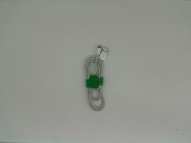 This product is an Apple USB-Lightning charging cord, which is designed to connect specifically to Apple devices for charging and syncing data. The cord in the image appears to be of standard length, typically around 1 meter, which provides ample length for everyday use. The USB end allows for compatibility with a wide range of chargers and computers, while the Lightning connector is made for Apple devices like the iPhone, iPad, and iPod. A notable feature visible in the image is the green cable organizer, which helps in keeping the cord neatly managed and tangle-free, enhancing the overall convenience and portability. The white color of the cord is consistent with Apple's sleek, minimalist design aesthetic.