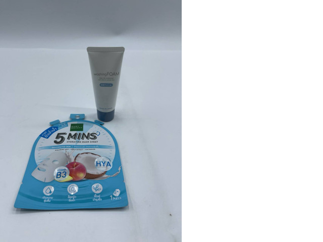 This cosmetic mask is designed to provide intensive hydration for dehydrated skin in just 5 minutes. The mask sheet contains key ingredients such as Hyaluronic Acid, Pecan Extract, and Niacinamide, ensuring that the skin receives deep moisture and nourishment. Additionally, it’s infused with Vitamin B3 to promote a healthy glow. The vibrant blue packaging is not only eye-catching but also clearly indicates its hydrating properties, with icons depicting benefits like moisture and skin improvement. Included with the mask is a tube of washing foam, which serves to cleanse the skin effectively while maintaining hydration. This dual product combination offers a comprehensive skincare routine, perfect for quick revitalization of the face.