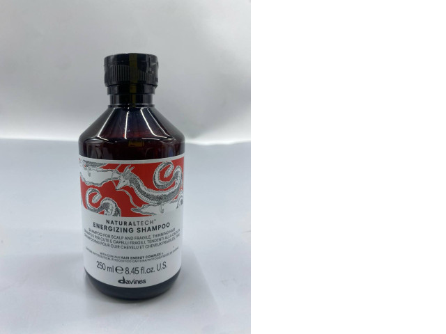 This is a bottle of Davines Naturaltech Energizing Shampoo, which is designed for fragile and thinning hair.