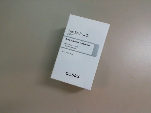 The Cosrx Retinol 0.5 oil from Korea is a skincare product designed to deliver potent anti-aging benefits. The packaging of the product visible in the image suggests a clean, medical-grade aesthetic with a minimalist design, which can appeal to consumers looking for a professional skincare solution. Key ingredients, as indicated on the box, include Super Vitamin E and Squalane, which are known for their moisturizing and antioxidant properties. The product's formulation with Retinol (Vitamin A derivative) is commonly used to reduce the appearance of fine lines and improve skin texture, making it a valuable addition to a nightly skincare routine.