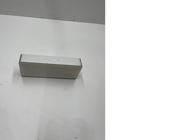 This small speaker operates via mains power and is not new. It features a compact design with a text..