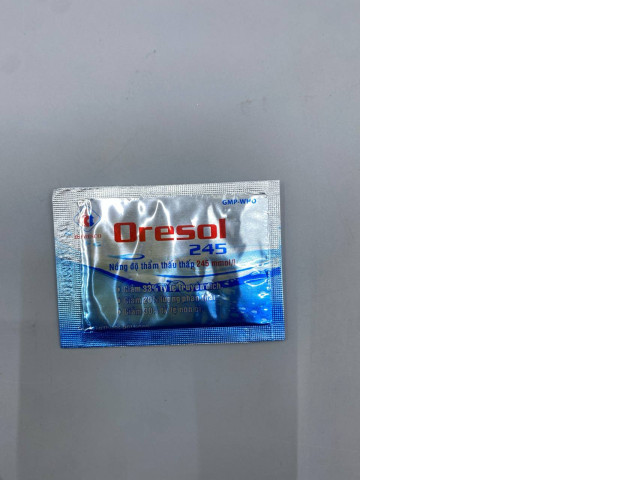 Oresol 245, an oral rehydration solution used to treat dehydration.