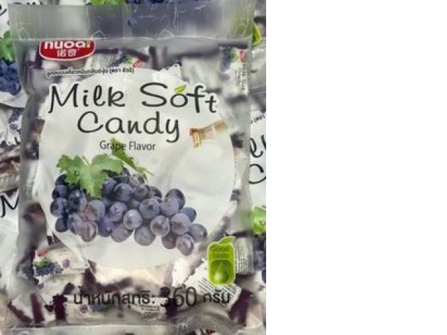Indulge in the sweet and fruity experience of chewy grape flavored candy, available in a generous 360g package. The product image highlights a cluster of rich, purple grapes, acknowledging the natural inspiration behind the candy's flavor profile. The label 'Milk Soft Candy' suggests a smooth and creamy texture, promising a harmonious blend of dairy notes with the sweet and tangy essence of grapes. This tempting treat is presented in an attractive packaging that celebrates its vineyard roots, ensuring a delightful confectionery experience with every piece.