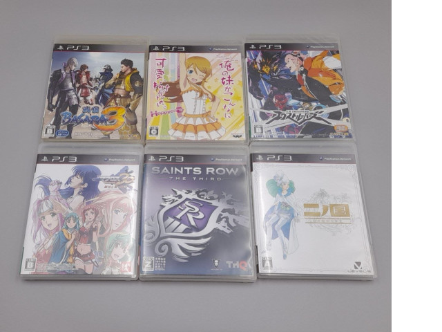Set of 6 Japanese PlayStation 3 (PS3) games include Sengoku Basara 3, Ore no Imouto ga Konnani Kawaii Wake ga Nai, E.X. Troopers, Tales of Graces F, Saints Row: The Third, and Ni no Kuni: Wrath of the White Witch.