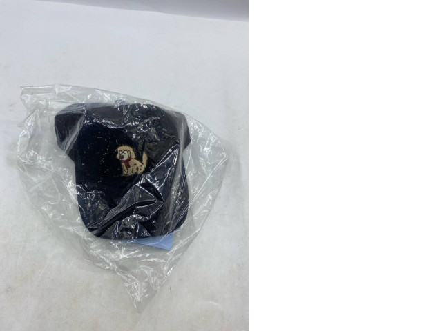 Black baseball cap with a dog pattern.
