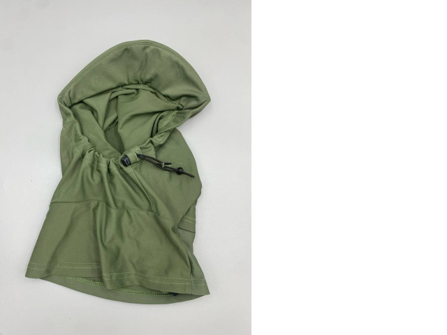 The full face mask is designed for maximum protection and comfort. It covers the entire head, including the face and neck, providing a secure fit with minimal exposure to the elements. Made from a soft, flexible material, it is ideal for outdoor activities such as skiing, snowboarding, or hiking in cold weather. The mask features an adjustable drawstring to ensure a snug fit, preventing it from slipping during movement. Its lightweight construction makes it easy to pack and carry, while the breathable fabric helps maintain airflow, reducing discomfort over extended wear. The color is a muted green, blending well with nature, enhancing its utility for hunters and outdoor enthusiasts.