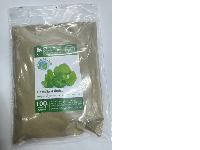 WORLD HERBAL ORGANIC PLANT Centella Asiatica is a premium herbal product made from 100% natural Centella Asiatica, commonly known as Gotu Kola. This finely powdered herbal supplement is designed for various uses, including cooking, cosmetics, and health applications. It is recognized for its numerous health benefits, particularly in supporting skin health, promoting wound healing, and enhancing cognitive function. The product is free from chemicals, herbicides, and pesticides, ensuring a pure and organic experience. Each package contains 100 grams of this versatile herb, conveniently packaged for ease of use.