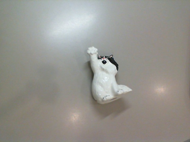 This charming ceramic cat figurine features a delightful design showcasing a cat with a glossy finish. The cat is predominantly white with black detailing on its ears and face, giving it a playful and endearing appearance. The figurine is captured in a lively pose, with one paw raised, which adds a sense of movement and character. Its small size makes it a perfect decorative piece for shelves, tables, or as a unique gift for cat lovers. The artistry in the craftsmanship highlights the texture of the feline's fur, while the vibrant colors and attention to detail enhance its visual appeal.