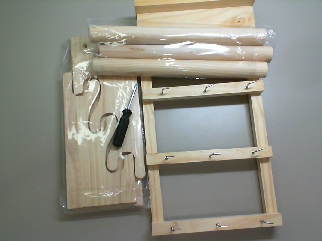 This DIY jewelry storage shelf provides an accessible and innovative way to organize and display your jewelry. The kit includes natural wooden components and metal hooks, offering a rustic aesthetic that can blend seamlessly with any decor. The unfinished wood surface invites a personalized touch, allowing users to stain, paint, or decorate according to their taste. The unit features a shelf for additional storage or decorative items and multiple hooks designed to hold necklaces, bracelets, and other jewelry without tangling. The inclusion of an assembly screwdriver shows that all necessary tools are provided, making the setup process straightforward and user-friendly. This practical and stylish solution keeps jewelry visible and entangled, making it a perfect addition to a bedroom or dressing area.