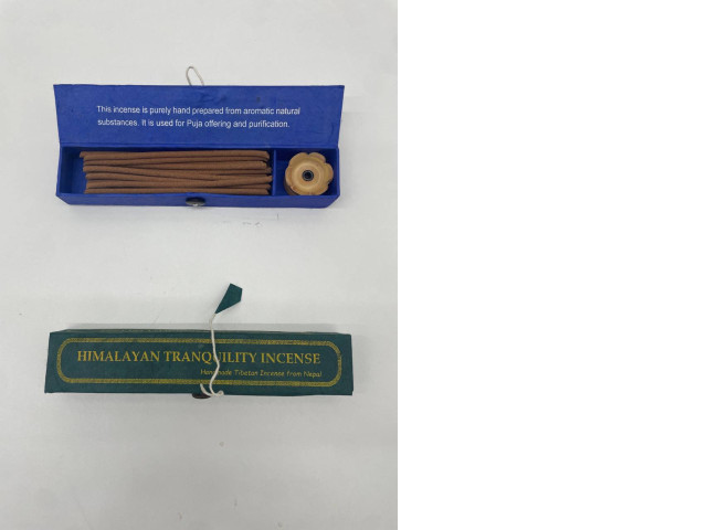 This exquisite set of Himalayan incense includes two beautifully crafted packs, each designed to enhance your spiritual and meditative practices. The incense sticks are made from natural aromatic substances, hand-prepared to ensure purity and quality. One box features 'Himalayan Tranquility Incense,' emphasizing its calming properties, while the other is elegantly wrapped in a vibrant blue, showcasing its unique design. The included holder shaped like a flower adds an aesthetic touch, making it perfect for Puja offerings and purification rituals. Light these incense sticks to experience their soothing fragrance, elevating your space into a serene sanctuary.
