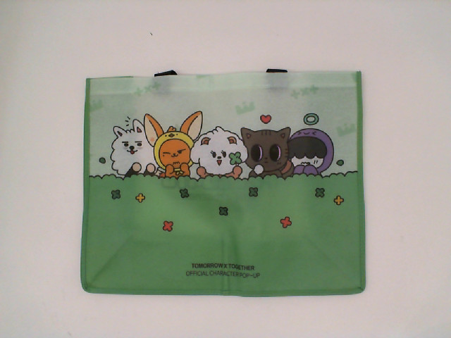 Green cream cloth bag with cartoon pattern