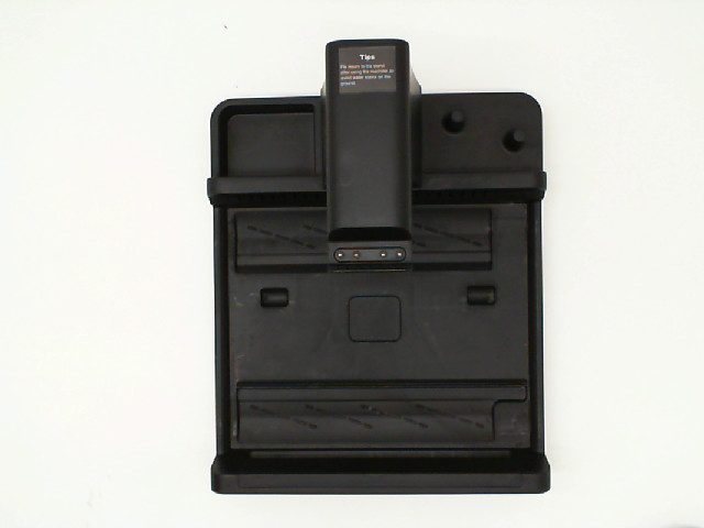 This electric vacuum cleaner charging base features a compact and sturdy design, compatible with a specific model as indicated by the interface on top. The base ensures convenient storage and constant charging when the vacuum cleaner is not in use, maintaining it ready for operation. The black color contributes to a sleek look, potentially blending well with various home decors. Non-slip feet appear to be integrated at the bottom, ensuring stability on different surfaces.
