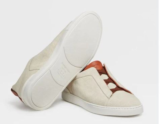 ermenegildo zegna Off White Deerskin Triple Stitch Sneakers