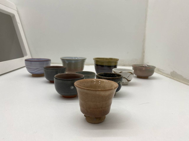 This exquisite set of 10 tea cups offers a variety of earthy tones and textures, each contributing t..