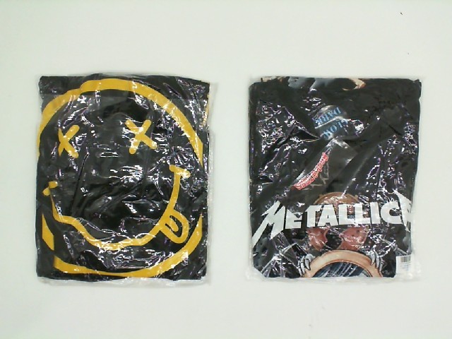 Set of 2 black ROCK@TEES T-shirts with band print: METALLICA, NIRVANA.Size XL