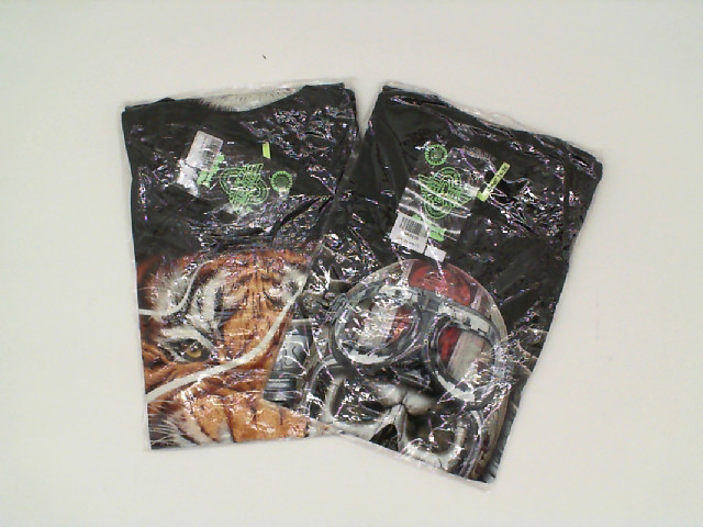Set of 2 ROCK EAGLE Black round neck t-shirt with skeleton riding a motorcycle and tiger print Size S