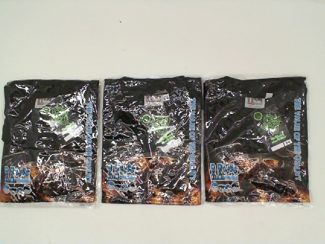 Set of 3 x ROCK EAGLE Black round neck t-shirt with a grim reaper pattern and a grim reaper riding a motorcycle pattern and a black-haired woman pattern