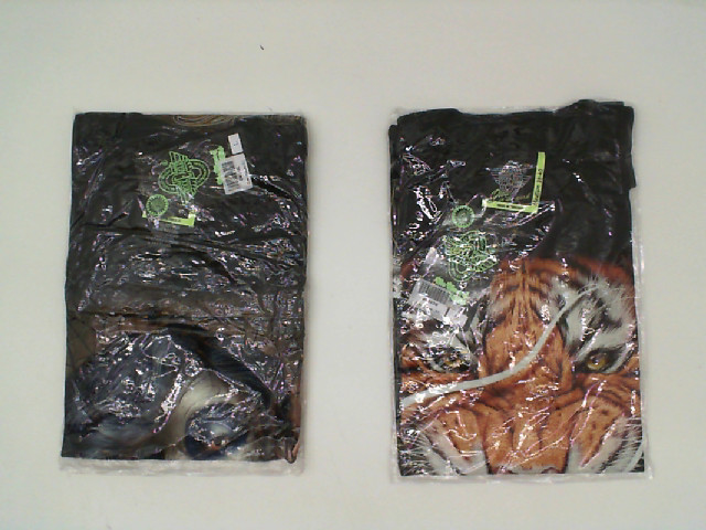 Set of 2 ROCK EAGLE Black round neck t-shirt with tiger print and purple hair woman pattern