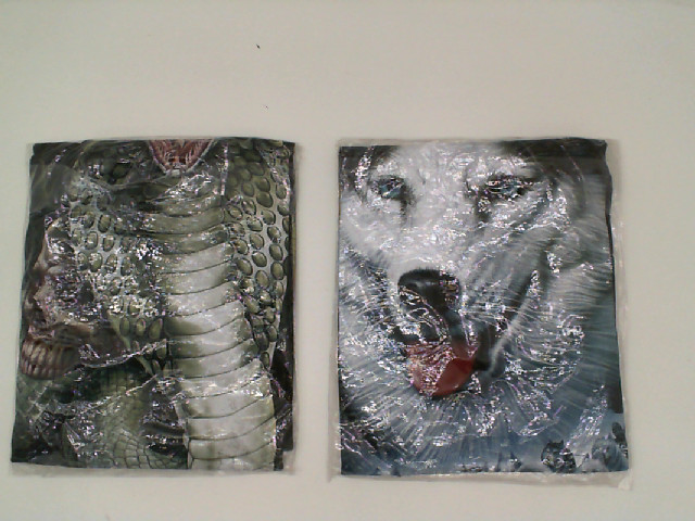Set of 2 ROCK EAGLE Black round neck t-shirt with white wolf and cobra print