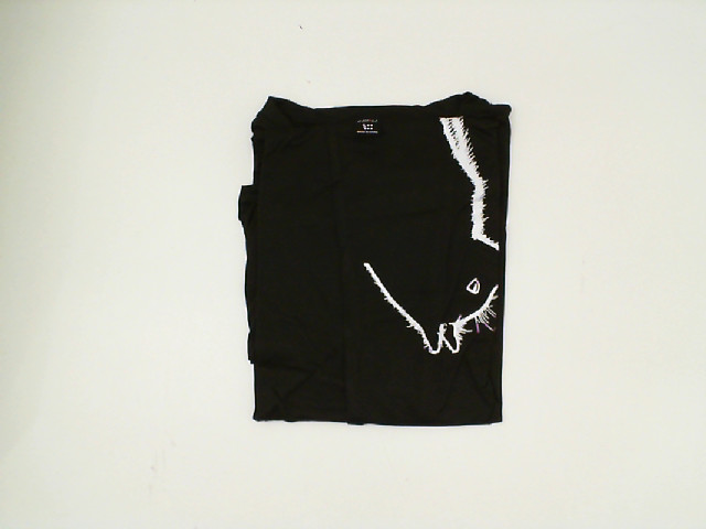 Black round neck t-shirt with white cat pattern