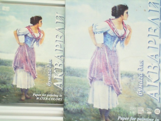 The product is a set of two packs of drawing paper, tailored for use with watercolors, as suggested by the image on the packaging. The image beautifully depicts a figure of a woman in a pastoral setting, accentuating the kind of artistic work that can be achieved with this paper. The sizes A4 and A5 are versatile for different scales of drawing and painting, making the set suitable for both detailed work and larger compositions. The textured surface of the paper is ideal for watercolor techniques, allowing the colors to blend and absorb properly. This set is perfect for artists and hobbyists who appreciate high-quality materials for their watercolor projects.