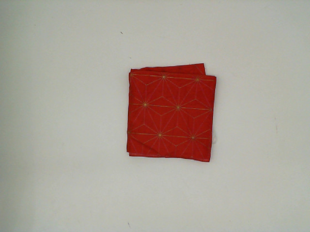 This apron features a vibrant red color with a unique white geometric pattern that adds a touch of elegance to its design. The pattern seems to be a series of connected stars or flowers, which gives the apron a festive look, making it suitable not only for everyday culinary tasks but also for special occasions. The apron appears to be folded, indicating its compactness, and the fabric looks durable enough for regular use in a kitchen setting. Its bright color could also conceivably make stains less noticeably, a practical aspect for anyone engaged in cooking or baking activities.