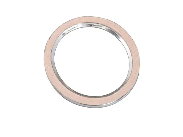 This product is a circular gasket, likely used for creating a tight seal between two surfaces. The construction appears to be metallic, probably steel with a copper coating, which suggests it has good thermal conductivity and can handle high temperatures. Its smooth finish indicates a high-quality manufacturing process that ensures a better seal and durability. This gasket is ideal for automotive, plumbing, or industrial applications where it is essential to prevent leaks of gases or liquids under pressure.