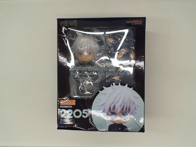This collectible figure represents Satoru Gojo, a beloved character from the popular anime series 'Jujutsu Kaisen.' The figure is crafted with high detail, capturing Gojo's distinctive silver hair and signature blindfold, which adds to his mysterious aura. His attire is the Tokyo Jujutsu High School uniform, consistent with his role as a teacher in the series. The package suggests that the product is made by Good Smile Company, known for their high-quality figures, and is part of their Nendoroid series, which are known for their charming, chibi-style representations of characters. This figure is likely to have multiple articulation points and come with additional face plates and accessories, allowing fans to pose and display Gojo in various dynamic ways.