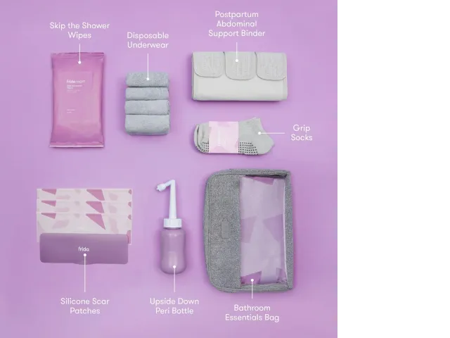 Postpartum set FRIDA MOM. Perineal foam, Perineal Cooling Pad Liners, Disposable postpartum underwear, Instant Maxi Pads, Upside down peri bottle