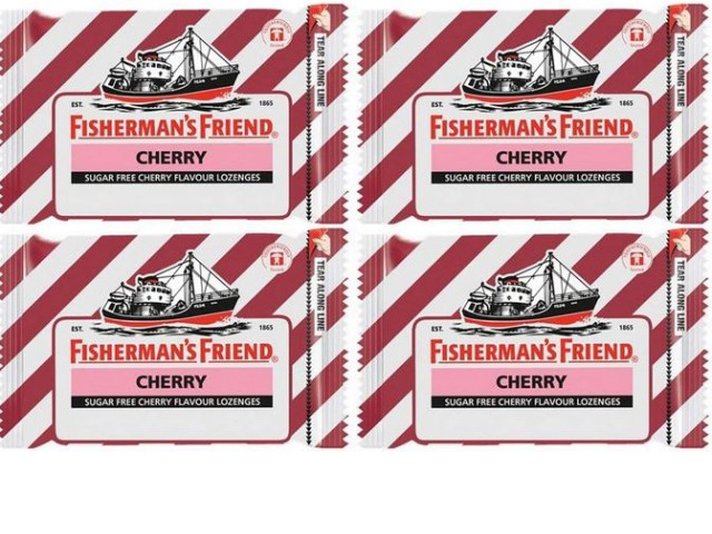 Enjoy the bold and refreshing taste of Fisherman’s Friend Cherry with this set of four lozenge packs. Each pack features a vibrant design showcasing a classic fishing boat, evoking a sense of adventure and nostalgia. The sugar-free cherry lozenges are perfect for soothing your throat while providing a burst of fruity flavor. Their convenient packaging makes them ideal for on-the-go relief, ensuring you always have a refreshing treat at hand. Experience the unique blend of intense cherry flavor in a product that's been trusted since 1865.