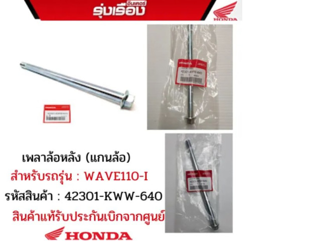 HONDA Rear axle (wheel axle) for model WAVE110-I, can be installed in any year, product code 42301-KWW-640 Genuine spare parts from the center