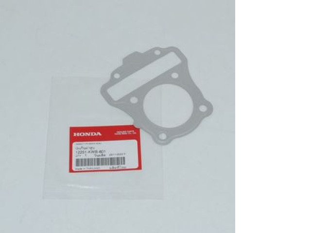 This genuine cylinder head gasket is designed specifically for the Wave 110i model and is labeled with the part number 12251-KWB-601. Made from high-quality materials, it ensures a reliable seal and optimal engine performance. Its precise design allows for easy installation, providing durability and longevity to your engine while preventing leaks. The gasket's unique shape and dimensions fit perfectly with the engine components, enhancing the overall reliability of your vehicle.