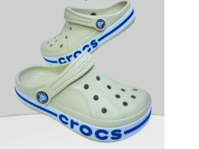 Experience ultimate comfort with Crocs shoes, featuring a stylish cream color design. These Crocs clogs are perfect for casual outings, offering a breathable structure with strategically placed ventilation holes for comfort and airflow. The durable material ensures longevity, while the non-slip sole provides stability, making them ideal for both indoor and outdoor use. The iconic 'crocs' branding in bold blue adds a fun pop of color, enhancing the overall aesthetic appeal. Versatile and easy to clean, these clogs are a go-to choice for a relaxed lifestyle.
